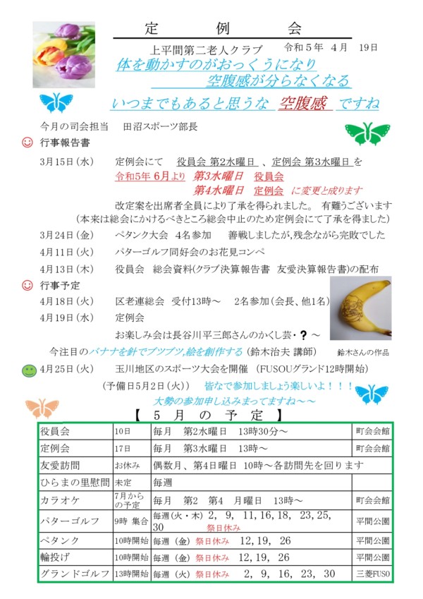 2023年4月13日 / 上平間第二老人クラブ, お知らせ一覧