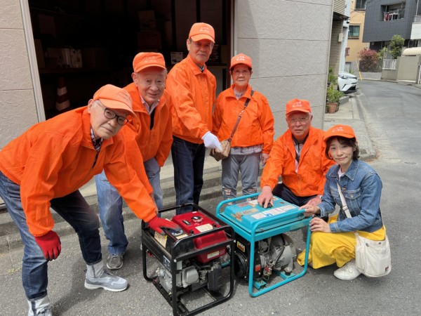 防災部では、偶数月に防災用発電機(発電機×2台、チェーンソー1台、エンジンカッター1台)の定期点検を実施しています。