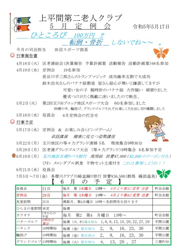 2023年5月12日 / 上平間第二老人クラブ, お知らせ一覧