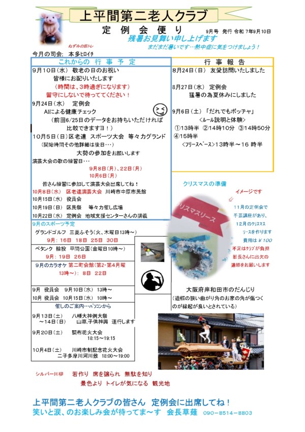 2025年9月2日 / 上平間第二老人クラブ, お知らせ一覧, イベント予定, イベント報告, 総務部, ホームページ班, 高齢社会部