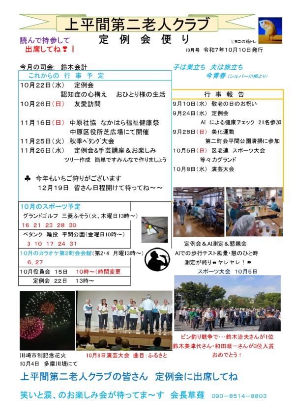 2025年10月14日 / 上平間第二老人クラブ, お知らせ一覧, イベント予定, イベント報告, 総務部, ホームページ班, 高齢社会部
