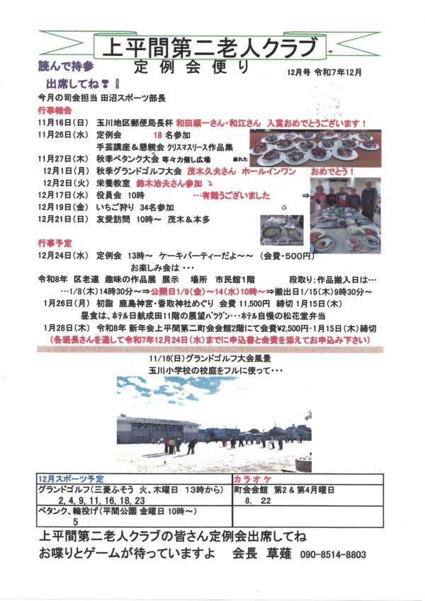 2025年12月13日 / 上平間第二老人クラブ, お知らせ一覧, イベント予定, 総務部, ホームページ班, 高齢社会部
