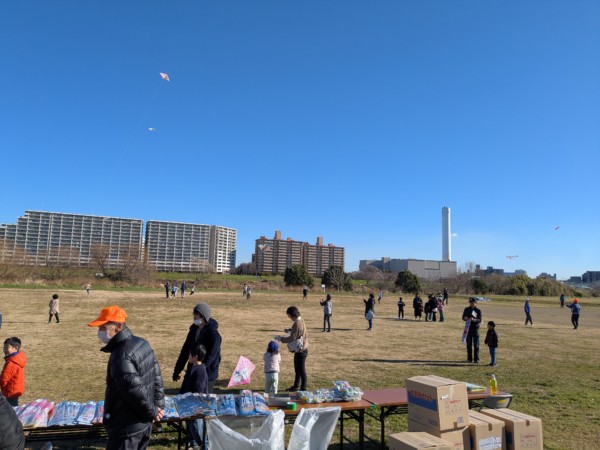 1月12日(月・祝)多摩川河川敷の青少年広場にて恒例の凧揚げ大会を開催しました。