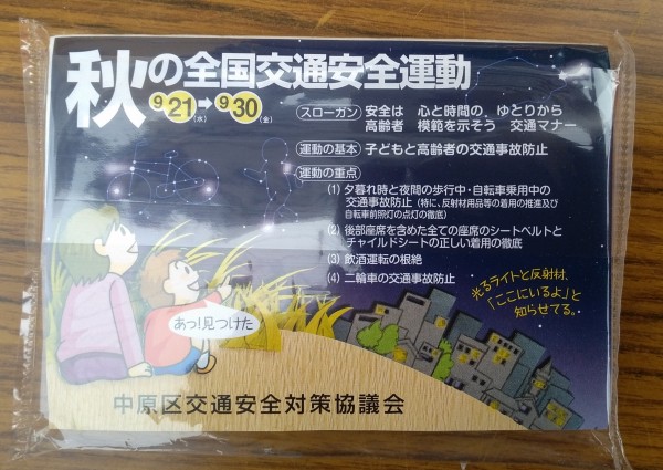 9月21日に始まった「秋の全国交通安全運動(ポスター)」に合わせて、第二町会でも23日朝、上平間交差点で交通事故防止に向けた啓発活動と街頭立哨を行いました。