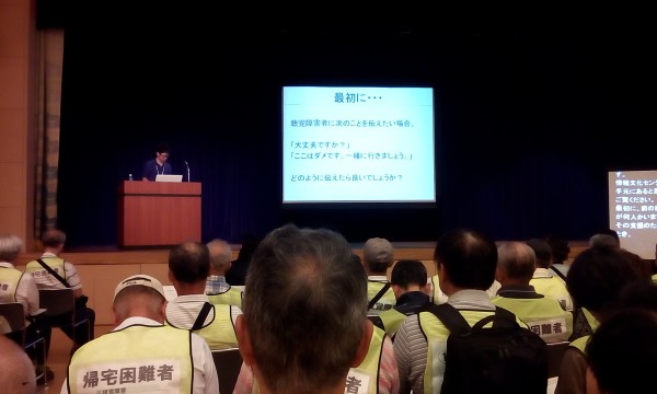 中原市民館では、川崎市国際交流協会、川崎市聴覚障害者災害対策委員会の方々から、外国人とろうあ者への支援のポイントについて講演を聞きました。