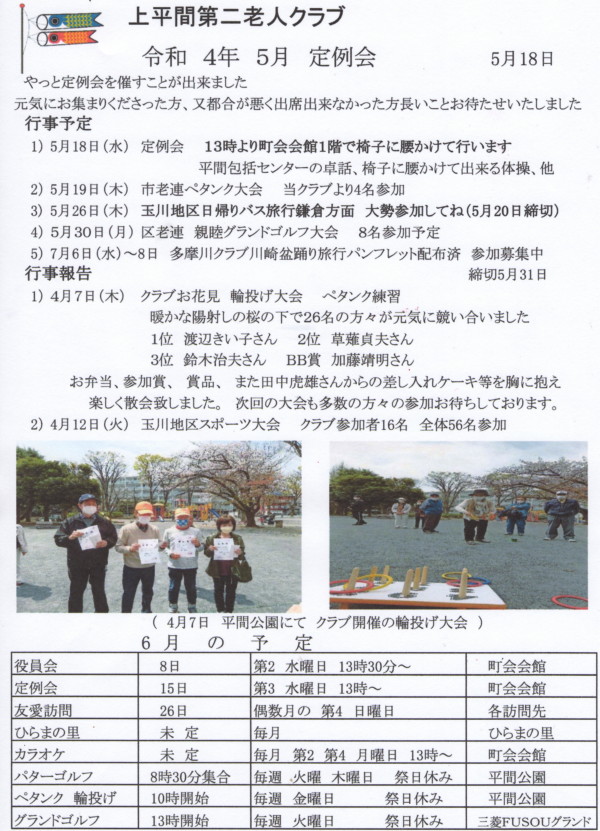 2022年5月11日 / 上平間第二老人クラブ, お知らせ一覧