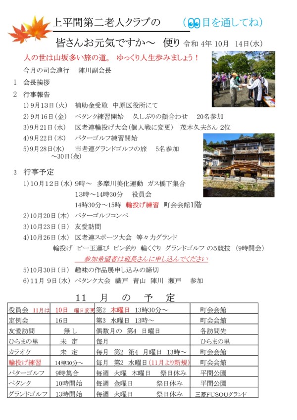 2022年10月19日 / 上平間第二老人クラブ, お知らせ一覧