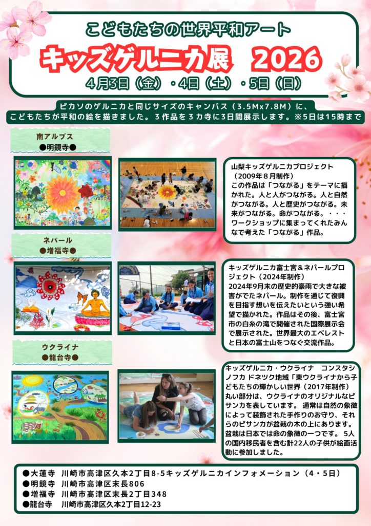 2026年4月5日(土)に『キッズゲルニカ展2026』の大蓮寺のステージに、すみえ先生といっしょに歌います。